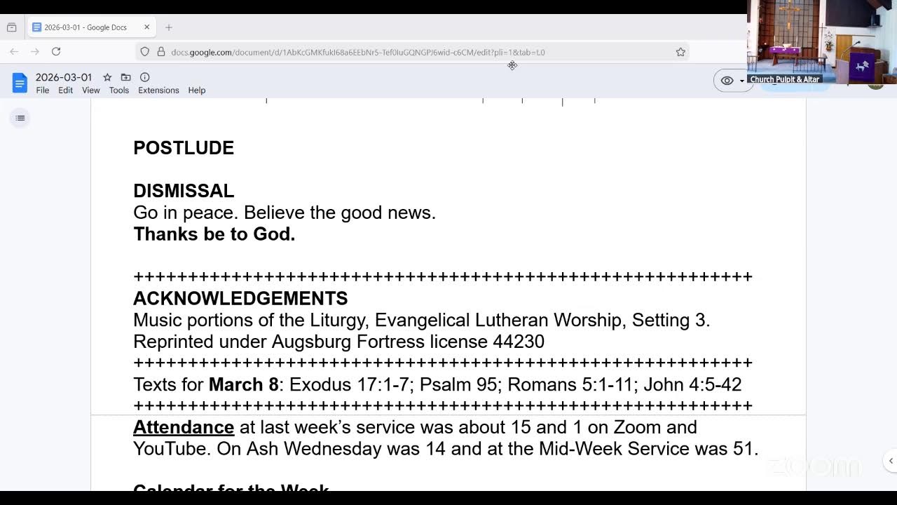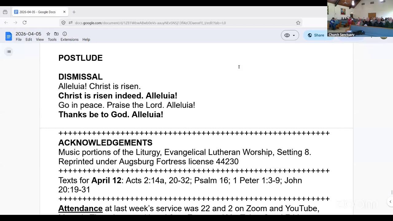 Sunday worship services are live streamed via Zoom Meetings and simulcast on YouTube.